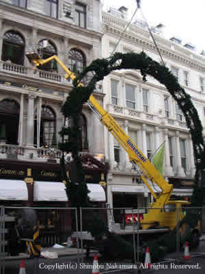 そんな中、某高級宝飾店も、一際目立つ巨大リースの準備に取り掛かっていました。